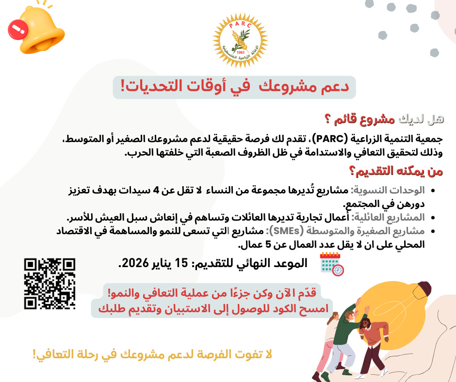 في ظل الظروف الصعبة التي خلفتها الحرب الأخيرة، تسعى جمعية التنمية الزراعية (PARC)، إلى تمكين النساء والشباب من استعادة سبل عيشهم عبر دعم مشاريع صغيرة ومتوسطة.